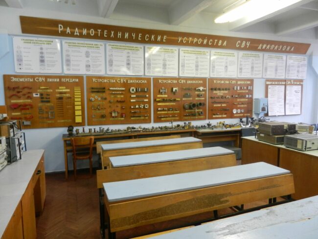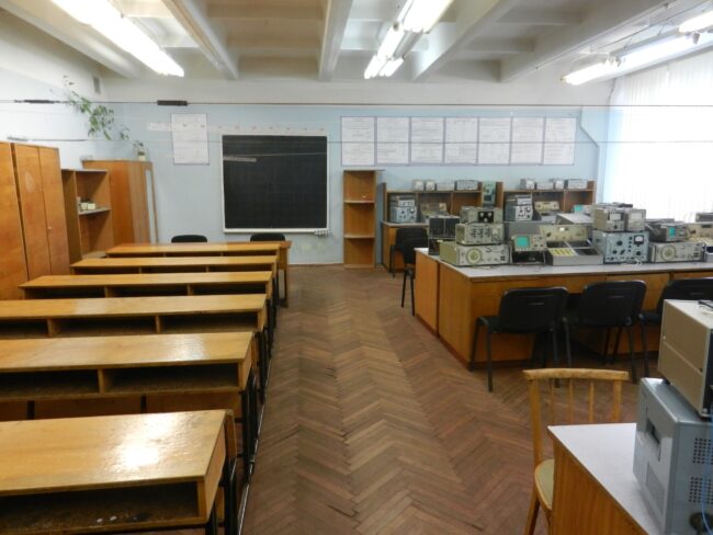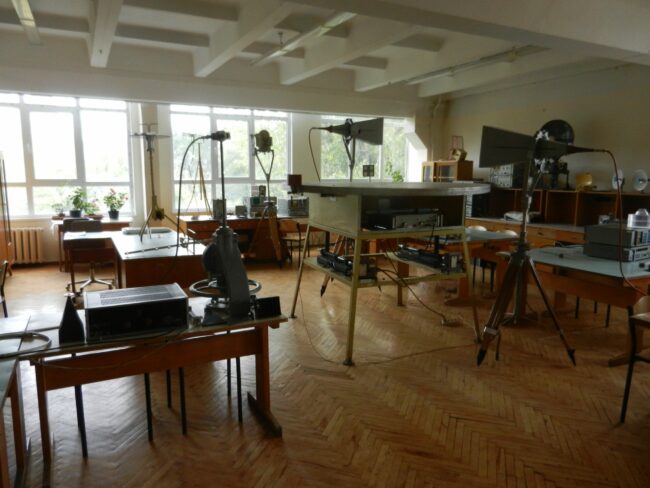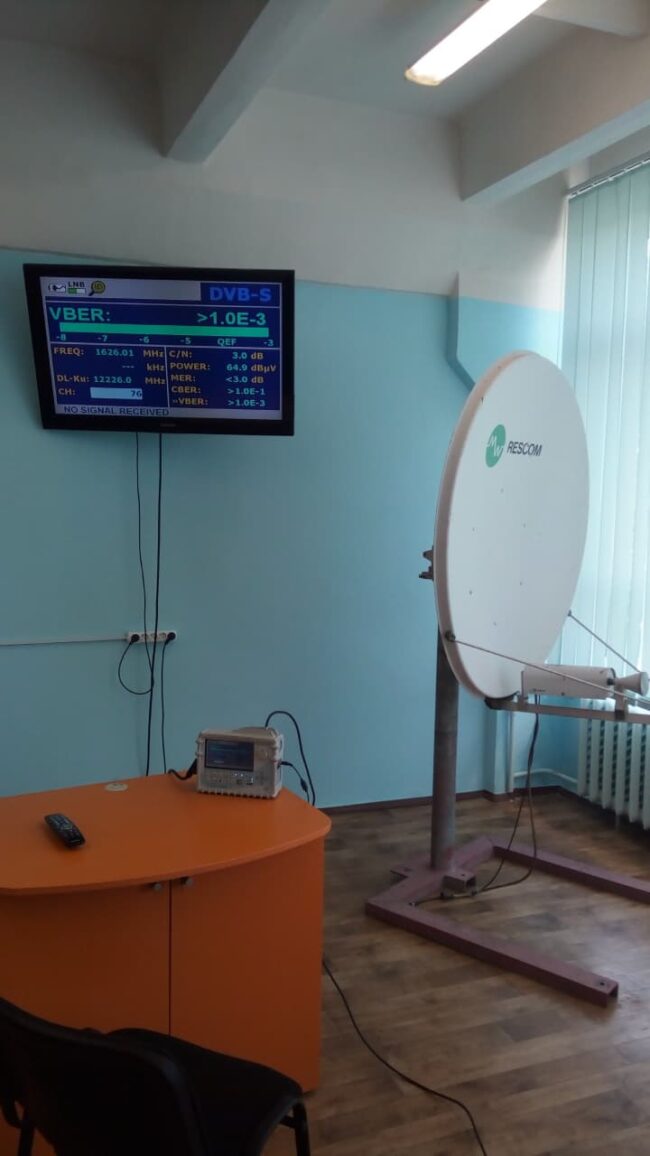Навчалньа лабораторія супутникових інформаційних систем Лабораторія забезпечує виконання лабораторних робіт з курсу “Супутникові інформаційні системи”, “НВЧ системи” Обладнання лабораторії: – 2 сучасні приймачі-аналізатори цифрових сигналів Promax TV Explorer – прямофокусна параболічна антена із 2-осьовим поворотним пристроєм – дводзеркальна антена Грегорі – 2 монітори для відображення інформації із приймачів Promax